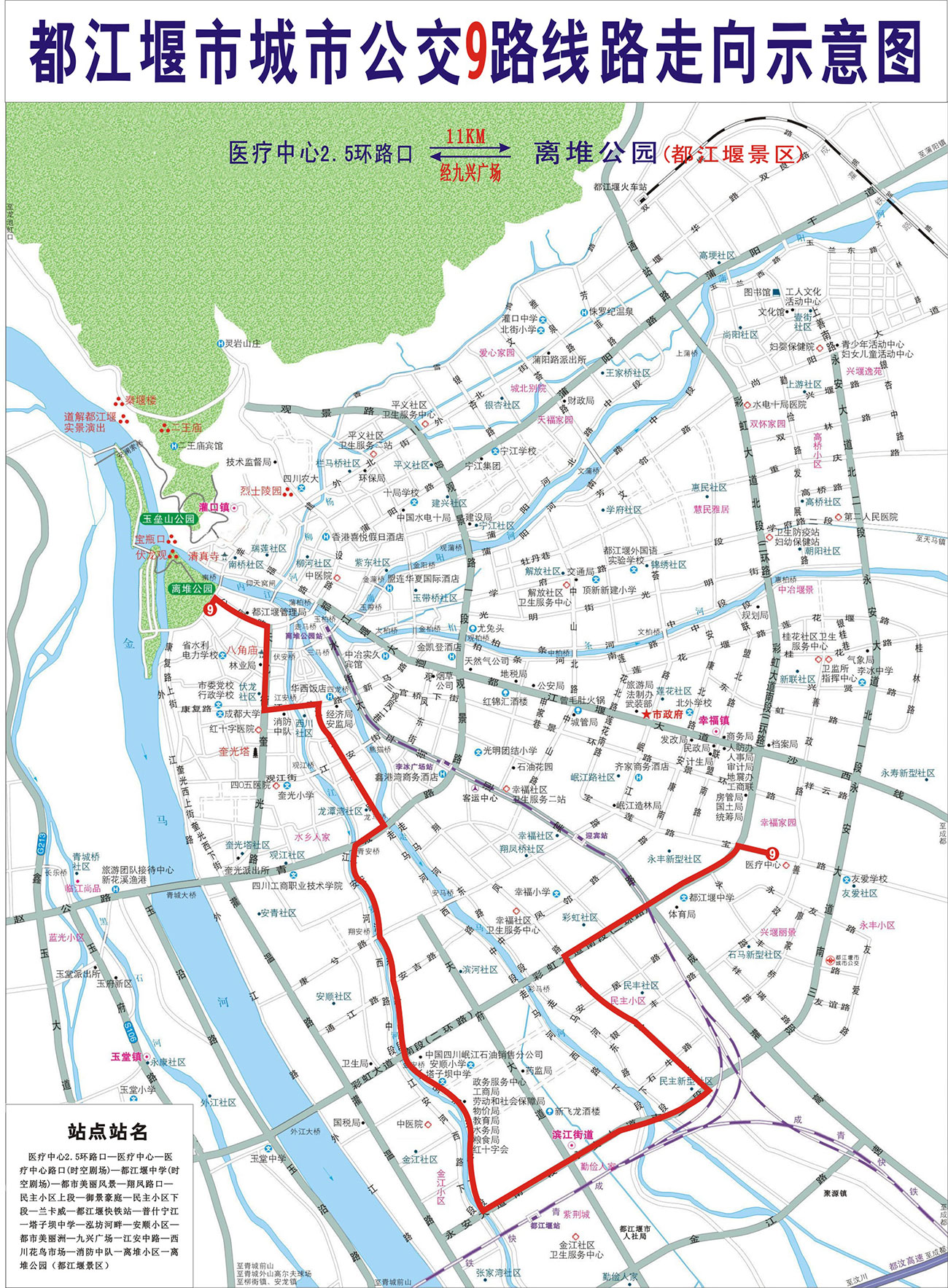 9路:醫(yī)療中心2.5環(huán)路口—離堆公園(都江堰景區(qū))(空調(diào)車(chē))