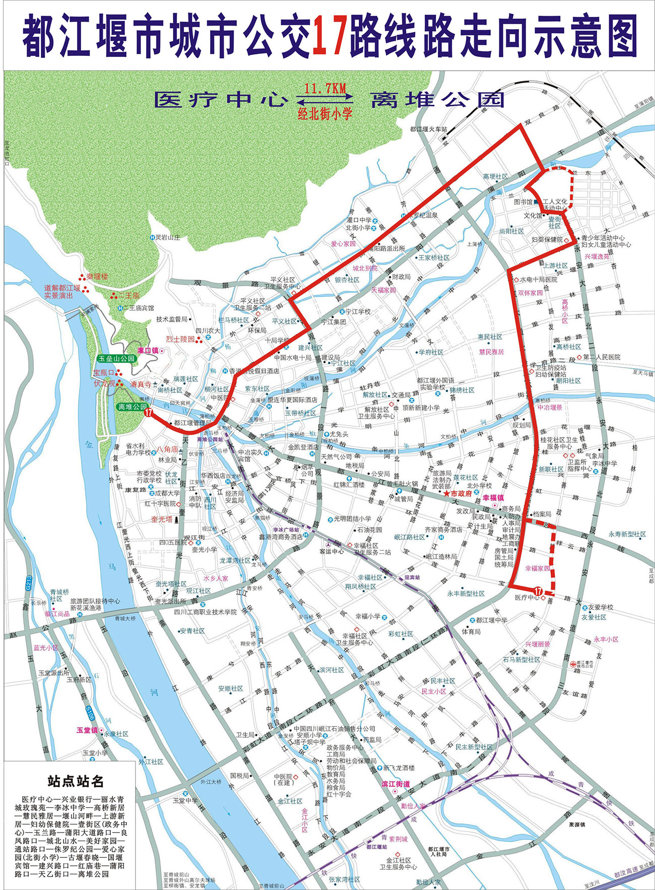 17路:離堆公園(都江堰景區(qū))—醫(yī)療中心(暫不能上廣告)(空調(diào)車(chē))